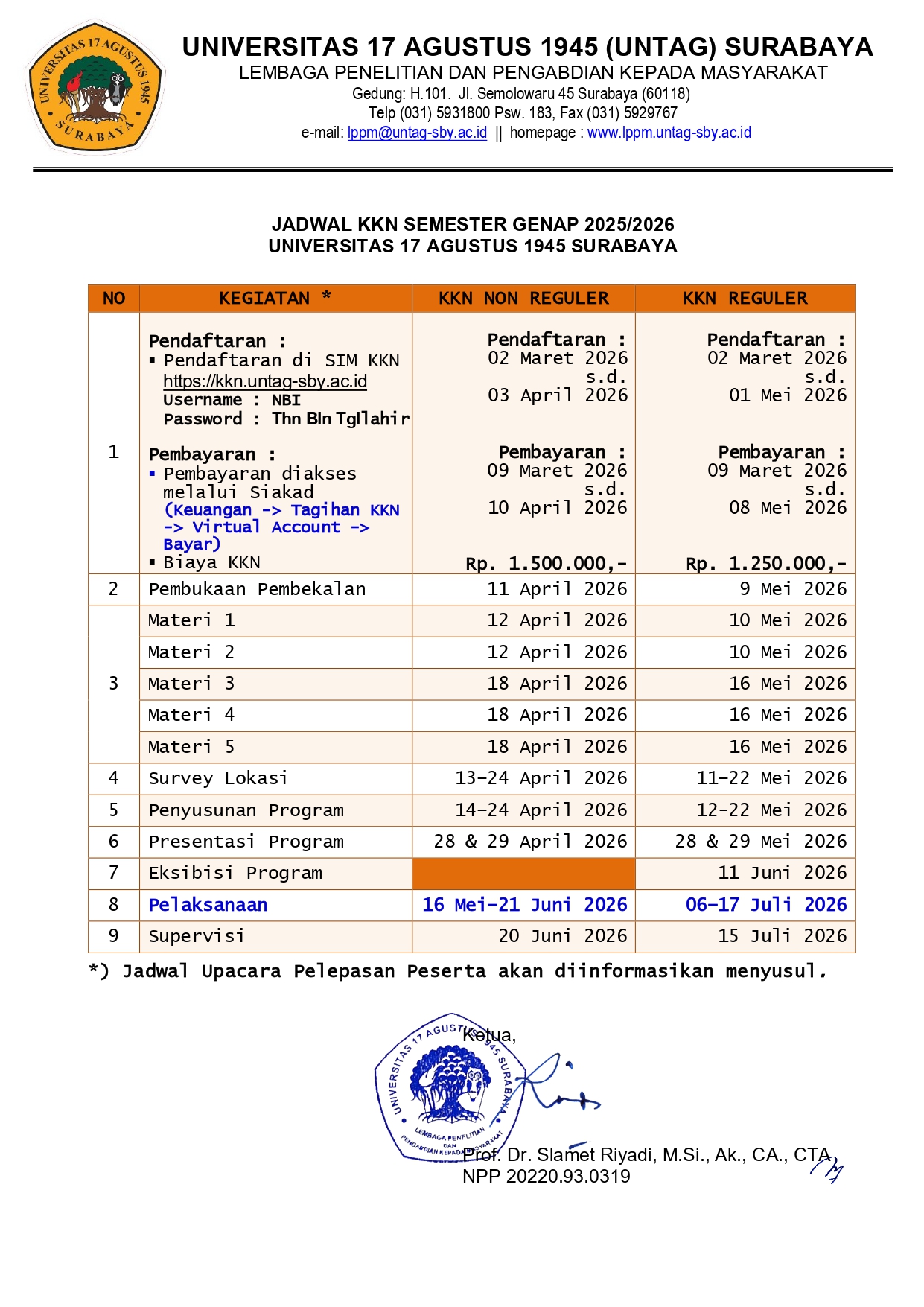 UNTAG Surabaya Umumkan Jadwal KKN Semester Genap 2025/2026