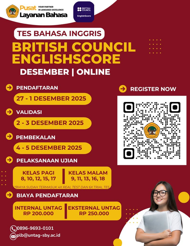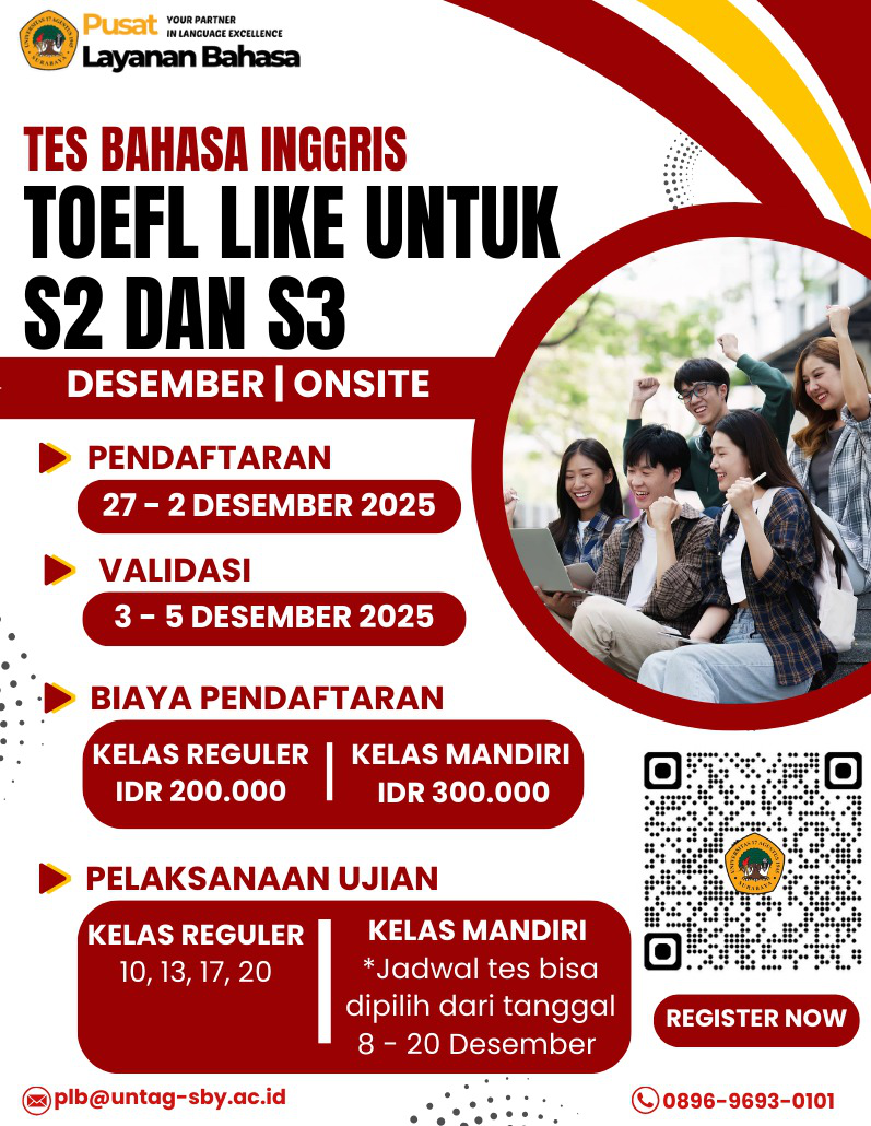 Pusat Layanan Bahasa UNTAG Surabaya Buka Pendaftaran Tes EnglishScore Desember 2025